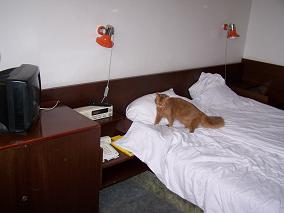 fand das Zimmer gar nicht so schlecht, zumal er hier sogar auf unsere Betten durfte. Nun gut - den ersten Schock